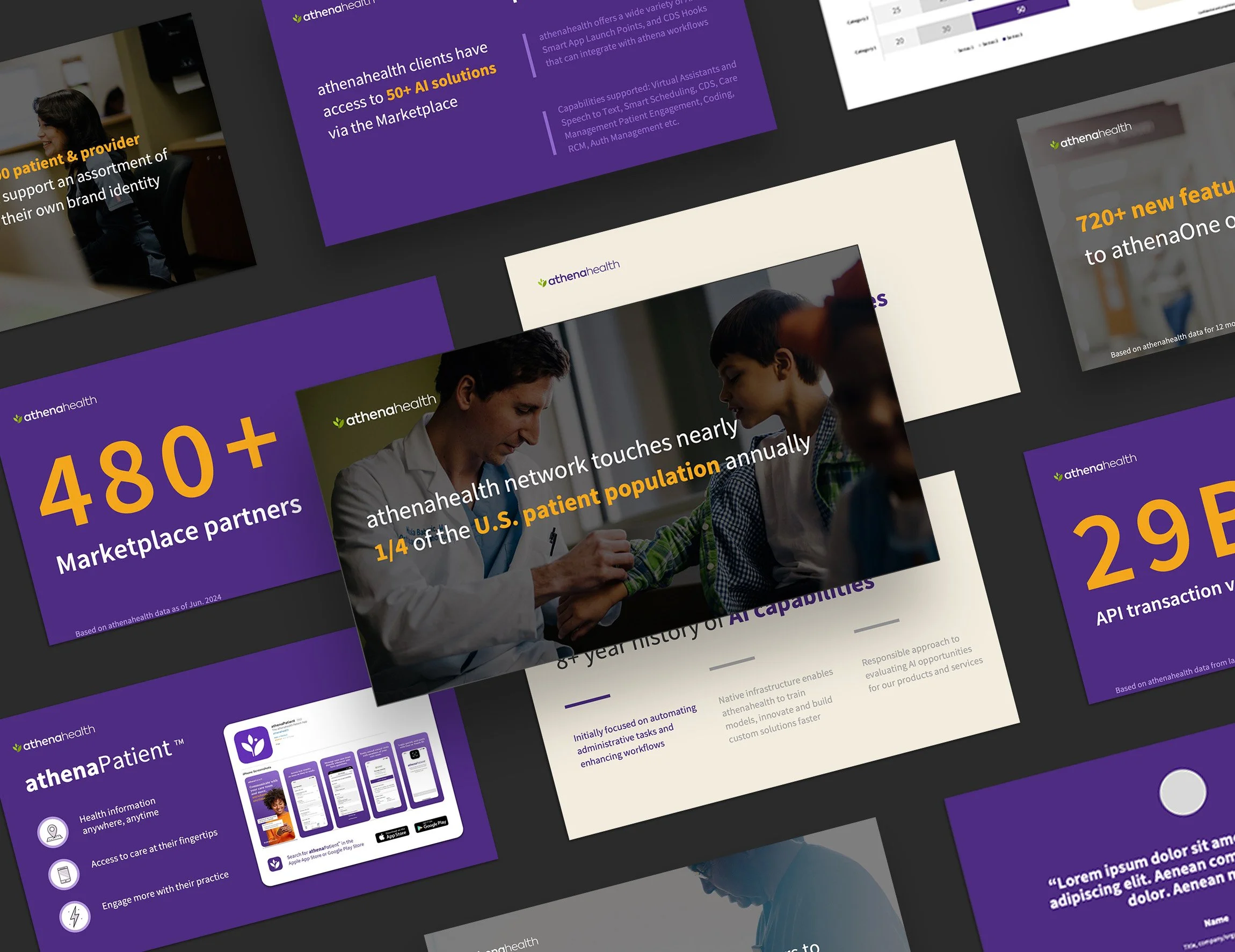 Angela is a Boston-based designer and visual storyteller. She loves freestyle dance, sketchbooks, and fresh-baked bread. athenahealth Branded Deck Template athenahealth Thrive Keynotes athenahealth Digital Reception Screen Digital Screen for MGMA Booth House Night Pop-up Flyer Food & Drink Pop-up Menu